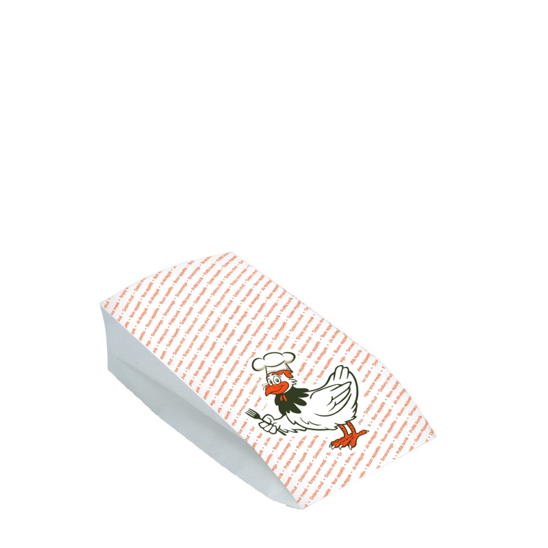 Sáčky na polovanu grilovaného kuřete, navržené o rozměrech 10,5 (+ 5,5 při roztažení stran) x 24 cm, ideálních pro balení drůbeže, představují perfektní řešení pro bezpečné a hygienické balení potravin. Tyto sáčky jsou vyrobeny ze dvou vrstev, papírové vrstvy a polyetylenové vrstvy, kterou je papír potažen, který zajišťuje jejich mimořádnou odolnost vůči mastnotě a vlhkosti. Díky nepromastitelné vrstvě jsou potraviny chráněny před prosáknutím tuku, což zajišťuje, že grilované kuře zůstane čerstvé a chutné až do okamžiku konzumace. Na sáčcích je zobrazen veselý obrázek kuřete - šéfkuchaře.